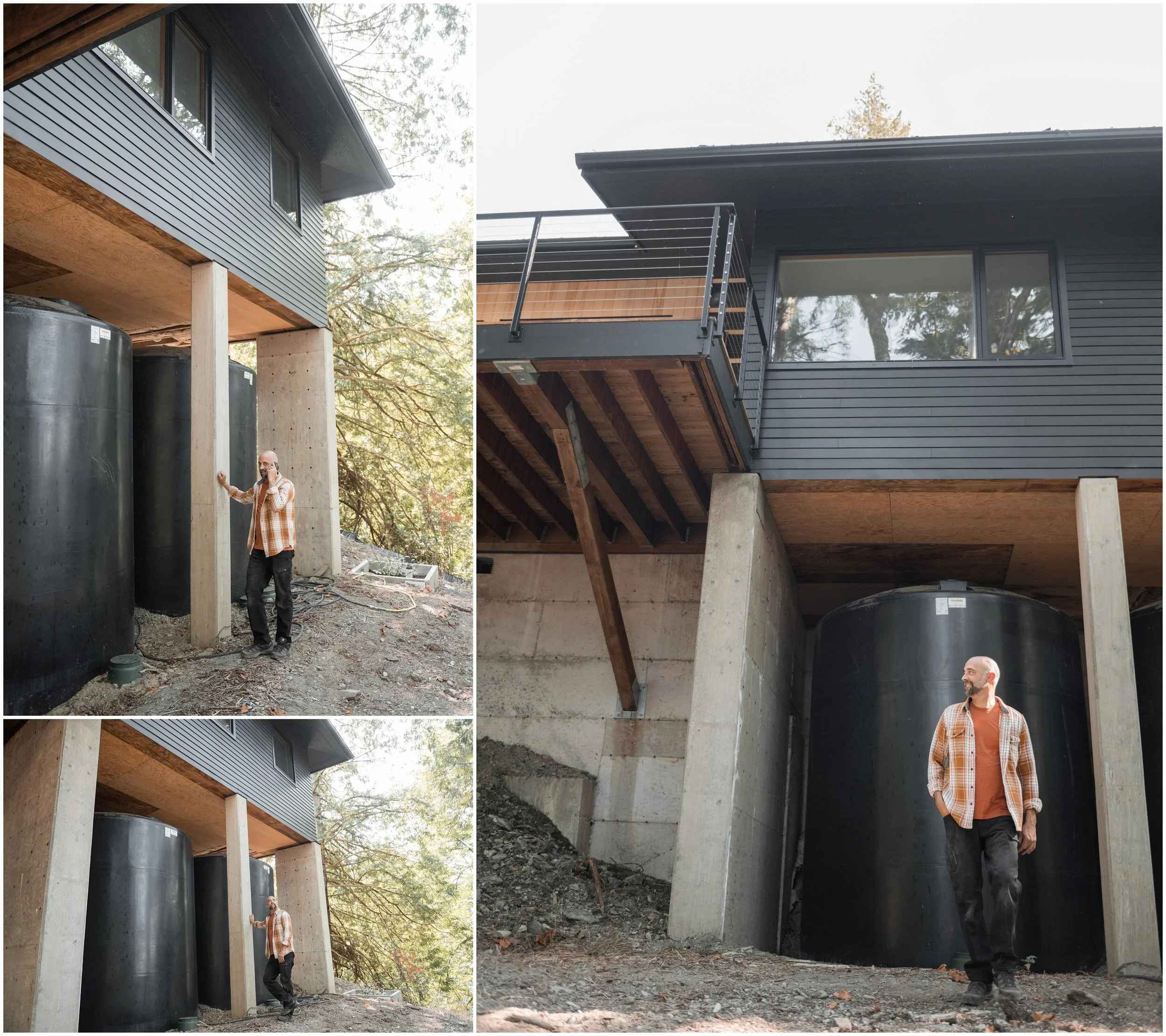 It was truly perfect timing and divine intervention that Javon and Jesse’s photoshoot worked out! They were a few weeks away from finishing up a beautiful custom-built home on Lake Whatcom that not only was a labor of love they built for their clients during the pandemic and during labor and material shortages, but this house was FULLY on brand for them. The wood, fixtures, and details were all in their branding colors and the aesthetic was pure PNW modern style - 100% what Raven Ridge is all about.